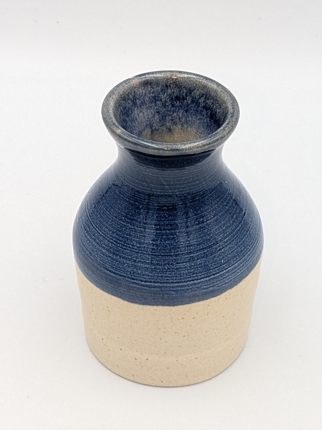 Bud vase, light oatmeal and dark blue.
