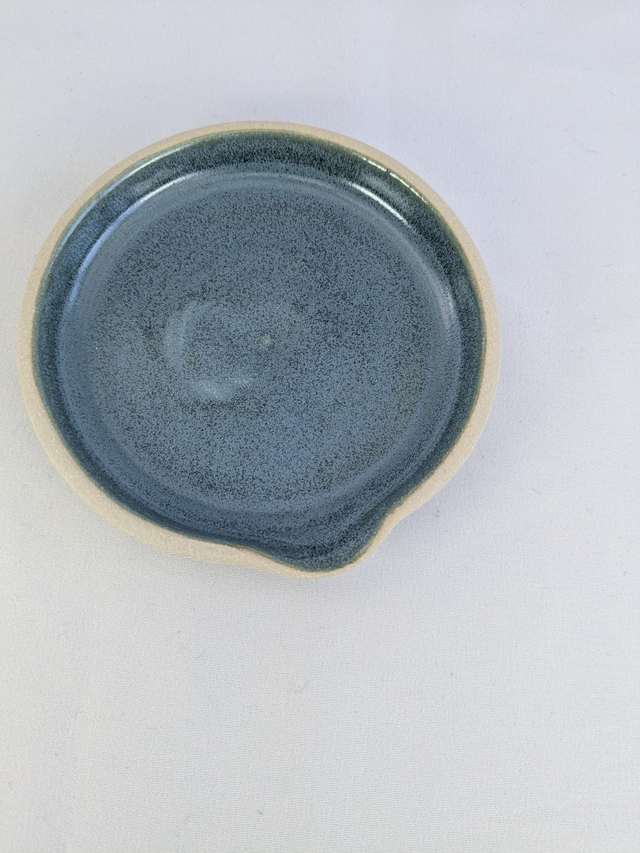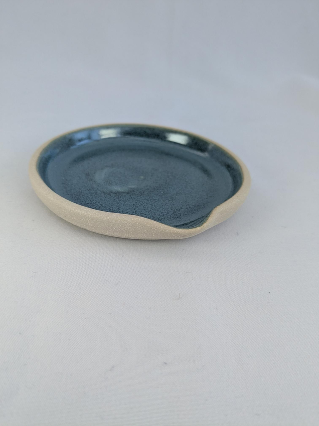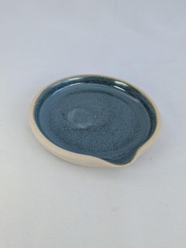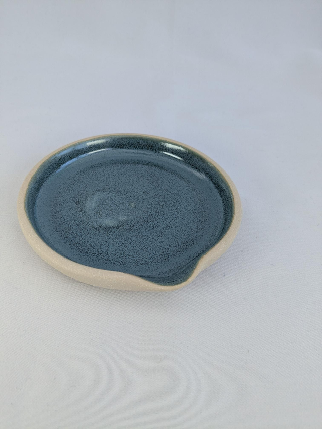 Handmade teal stoneware spoon rest. Approximately 10cm wide, 1cm high.