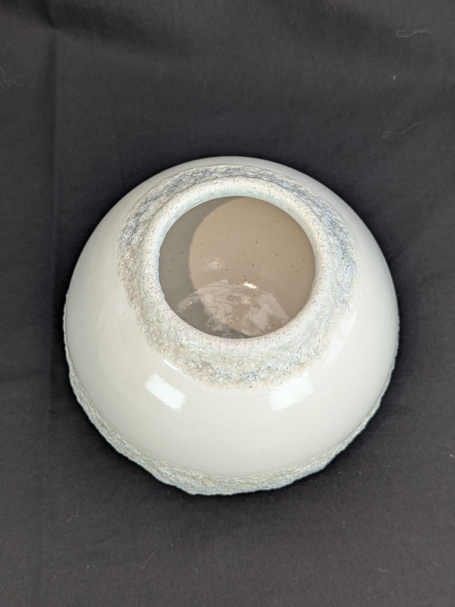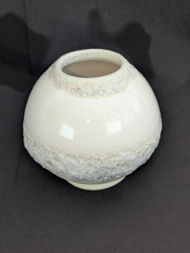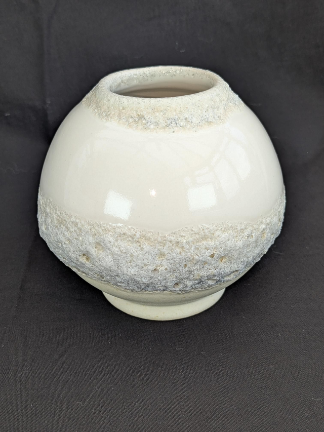 Stoneware hand thrown, stoneware moon jar. White and light oatmeal with volcanic glaze. Approximately 10.5cm wide and 10.cm high.